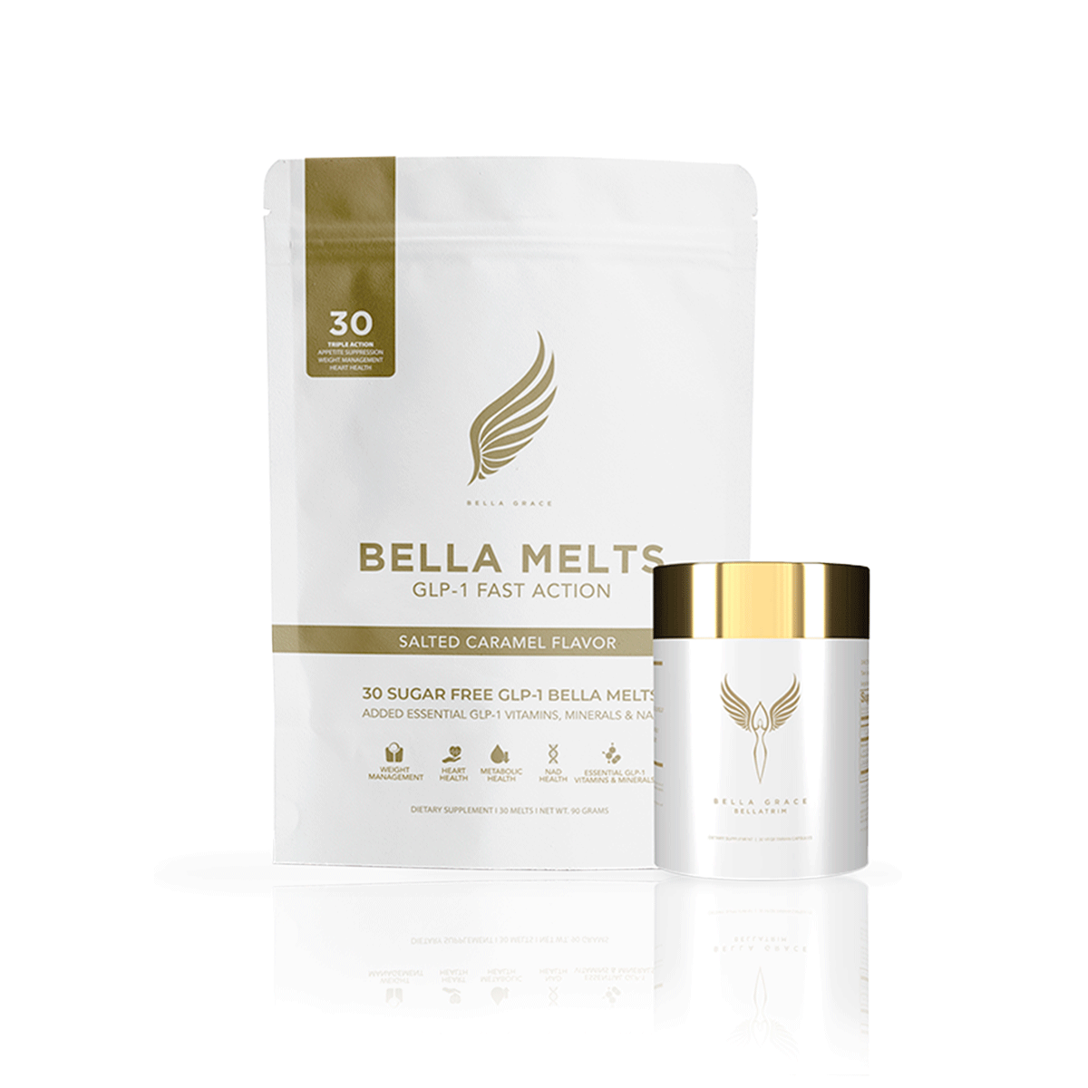 Tämä yhdistelmä aktivoi luonnollisesti kehon oman GLP-1-tuotannon ilman neuloja tai vakavia sivuvaikutuksia. Yhdessä Bella Melts ja BellaTrim tukevat älykkäämpää ja kestävämpää lähestymistapaa painonhallintaan hillitsemällä ruokahalua, vähentämällä stressihormoneja ja tukemalla aineenvaihdunnan terveyttä.